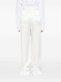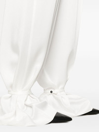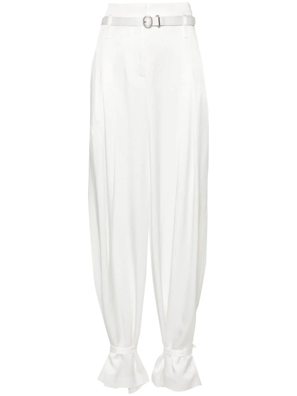 belted ankle-tie tailored trousers Highlights - White - Crepe texture - Belted waist - Pleat detailing - Two side inset pockets - Pressed crease - Two rear welt pockets - Tied ankles - Straight leg - Concealed front button, hook and zip fastening Made in Italy Composition Outer: Acetate 74%, Viscose 26% Lining: Cotton 100% SIZE & FIT Model measurements Height 5 ft 10 in(1.77 m) Bust/Chest 33.07 in(84 cm) Hips 37 in(94 cm) Waist 24.8 in(63 cm) FittingInformation Designed with a wide-leg cut, these trousers allow for a close fit at the waist and offer a loose and roomy fit over the leg The belt offers adjustability for fitted preferences Made from a midweight non-stretch fabric This piece fits true to size – take your usual size