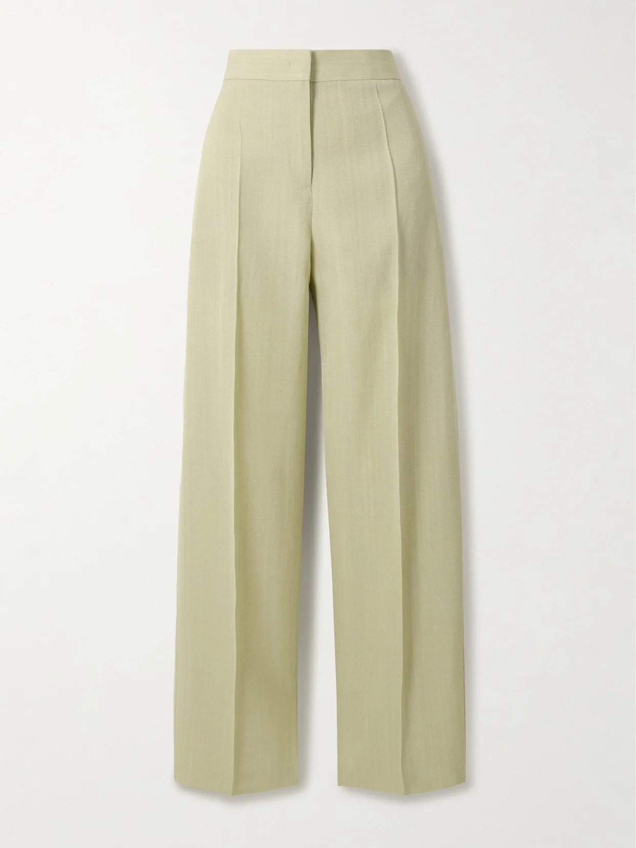 Jil Sander's refined collections will feel elegant for years to come. These subtly striped pants are cut from crepe and have elongating pressed creases through the fluid wide legs. Large to size. See Size & Fit notes.