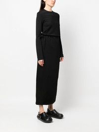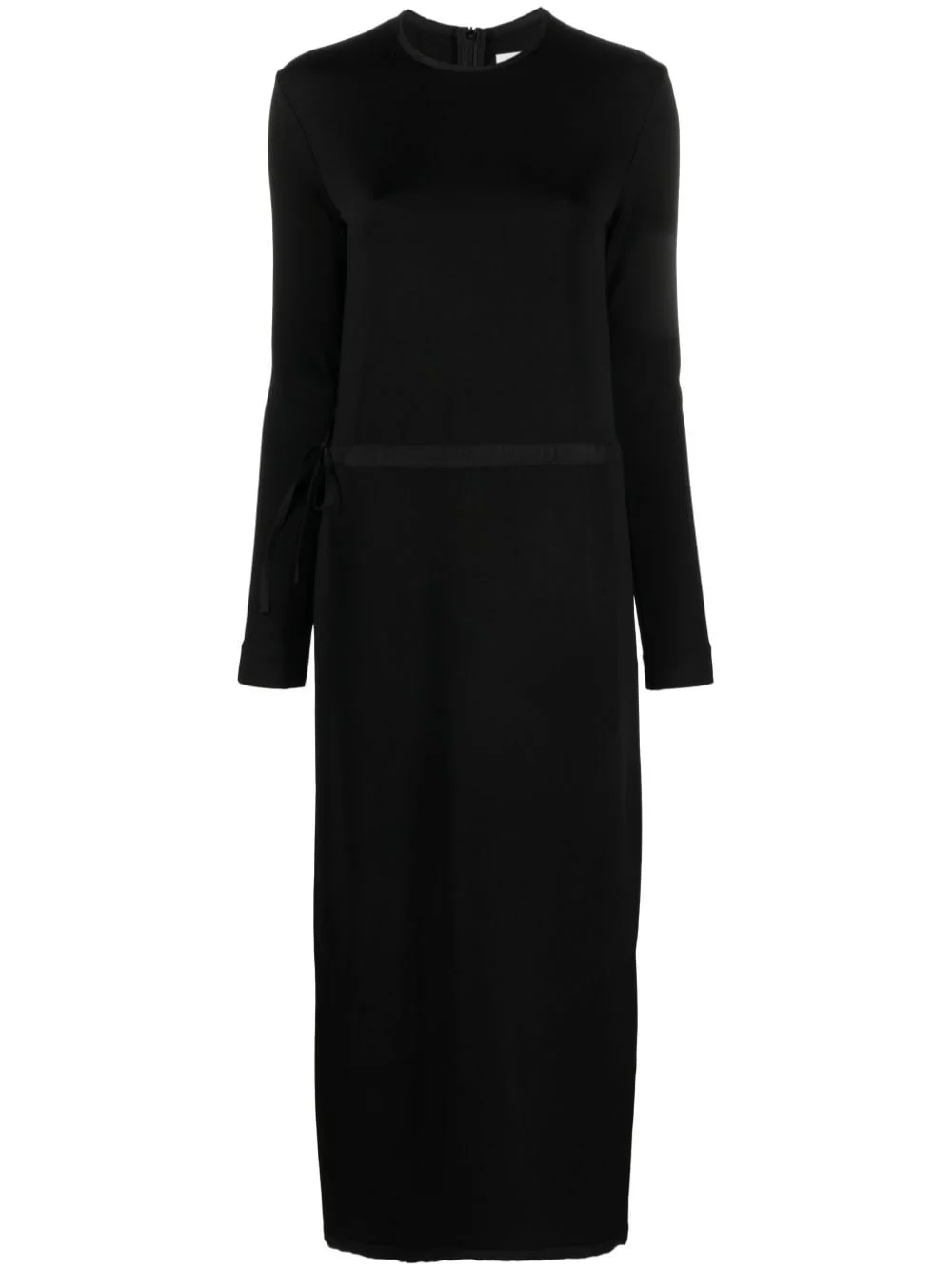 drawstring-waist midi dress Jil Sander exemplifies its understated refinement with this satin midi dress. Designed in a straight silhouette, it features a drawstring waist for a customisable fit. Highlights - Black - Satin finish - Crew neck - Long sleeves - Drawstring waist - Straight hem - Mid-length Made in Italy Composition Lining: Viscose 100% Outer: Viscose 46%, Virgin Wool 40%, Polyamide 10%, Elastane 4% SIZE & FIT Model measurements Height 5 ft 10 in(1.78 m) Bust/Chest 31.49 in(80 cm) Hips 36.22 in(92 cm) Waist 25.59 in(65 cm) Measurement HIPS 38.58 in(98 cm) LENGTH 55.9 in(142 cm) WAIST 35.43 in(90 cm) FittingInformation Designed for a slim fit that sits just away from the body offering a close yet comfortable fit The adjustable tie waist gives a more adaptable and personalised fit Made from a midweight stretch fabric, this piece offers elasticity and flexibility when worn This piece fits true to size – take your usual size Washing instructions Dry Clean Only