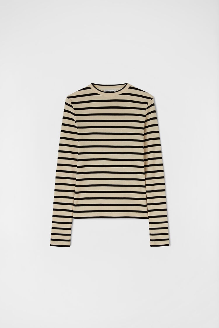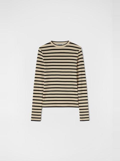 Two-toned long-sleeved cotton t-shirt with Jil Sander+ logo label on the back Details - regular fit - crew neck - two-toned stripe detail - back Jil Sander+ logo label top-stitching - primary fabric: 100% cotton, lining: 100% cotton, lining: 100% cotton - made in Italy - StyleID: J40NH0003J46497080 Care - hand wash - iron with care Details - model is 177cm/5'9" and is wearing a size S