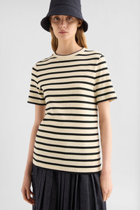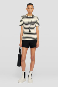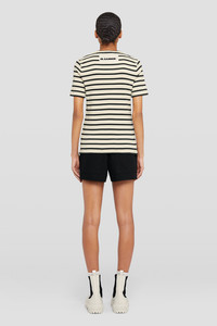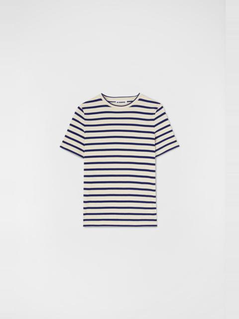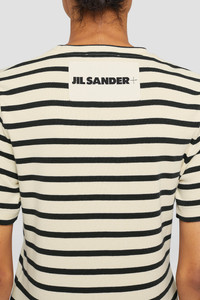 Cotton jersey t-shirt with Jil Sander+ logo label stitched at back Details - regular fit - crew neck - two-toned stripes - Jil Sander+ logo label top-stitched at back - ribbed cotton jersey - primary fabric: 100% cotton, lining: 100% cotton, lining: 100% cotton - made in Italy - StyleID: J40GC0111J46497080 Care - hand wash - iron with care Fit - model is 177cm/5'9" and is wearing a size S - Please note that the physical label of the item will show the international size