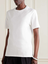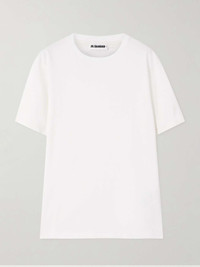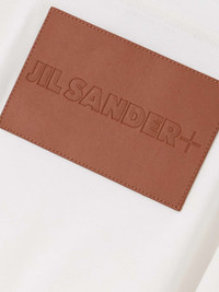 EDITORS'NOTES Jil Sander's T-shirt may look like a classic style but it has an oversized leather logo appliqued at the back, instantly setting it apart from others. It's made from soft cotton-jersey and has a relaxed shape with dropped shoulders. SIZE & FIT Model measurements: - Fits true to size, take your normal size - Designed for a relaxed fit - Lightweight, slightly stretchy fabric - Model is 177cm/ 5'10" and is wearing a size Small - Bust: 79cm/ 31" - Waist: 63cm/ 25” - Hip: 90cm/ 35.5” DETAILS & CARE - White cotton-jersey, brown leather - Slips on - 100% cotton; trim: 100% leather (Lamb) - Dry clean