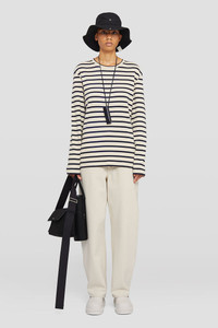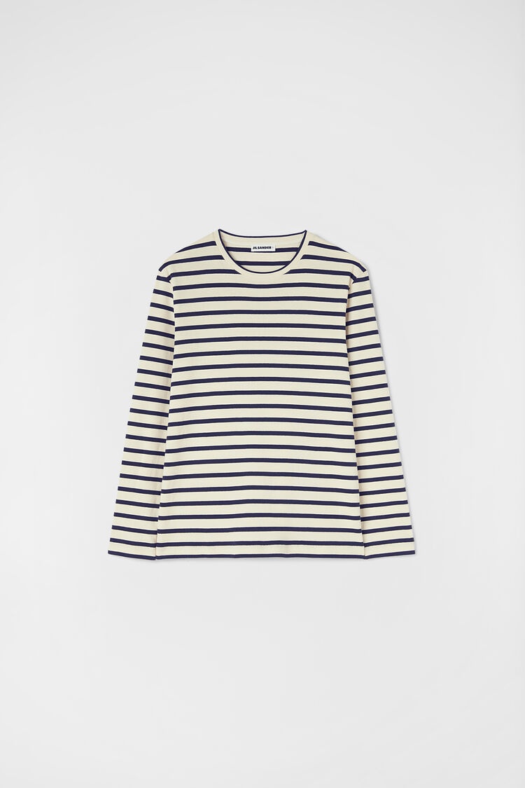 Two-toned long-sleeved cotton t-shirt with Jil Sander+ logo label on the back Details - regular fit - crew neck - two-toned stripe detail - back Jil Sander+ logo label top-stitching - primary fabric: 100% cotton, lining: 100% cotton, lining: 100% cotton - made in Italy - StyleID: J40NH0003J46497124 Care - hand wash - iron with care Details - model is 177cm/5'9" and is wearing a size S - Please note that the physical label of the item will show the international size