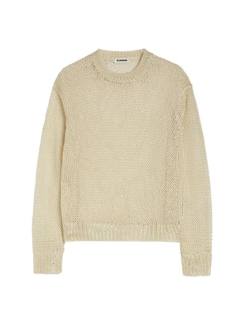 open knit Sweater Highlights - Neutrals - Silk - Open knit - Ribbed round neck - Long sleeves - Internal logo patch Made in Italy Composition Silk 100% SIZE & FIT FittingInformation Designed to be unstructured, offering a loose fit throughout Made with a midweight knit, this piece offers some stretch