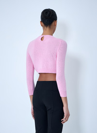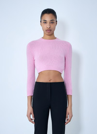 Knit sweater in cropped silhouette with ribbed trims. - Crewneck - Long sleeves - Ribbed trims - 97% Wool 3% Polyamide - Color: Pink - Code: J03GP0191 J14837 671