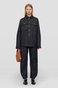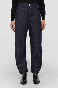 Organic cotton denim trousers Details - relaxed fit - button closure - raw edge finish - multiple darts and stitching - dome button closure with engraved Jil Sander monogram - organic cotton denim - 100% cotton - made in Italy - StyleID: J04KA0114J46463010 Care - dry clean only - iron with care Fit - model is 179cm/5'10" and is wearing a size 34 DE - Please note that the physical label of the item will show the German size