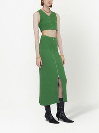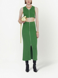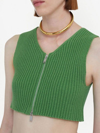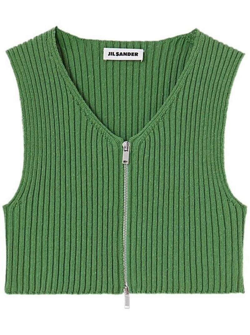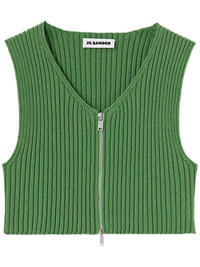 zip-up ribbed crop top Showcasing Jil Sander's focus on minimal silhouettes, this top is released in a full green hue. Free from any patterns or embellishments, it is defined by its ribbed construction. Highlights - Bright green - Cotton - Ribbed detailing - V-neck - Front zip fastening - Sleeveless - Cropped Made in Italy Composition Cotton 100%