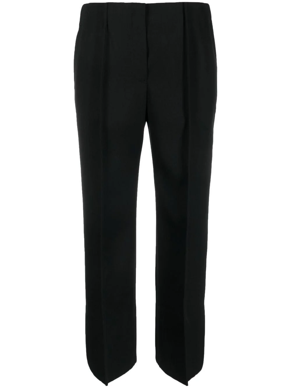 cropped wool wide-leg trousers black wool/cotton high waist zip fly fastening seam detailing two side inset pockets two rear jetted pockets rear slits wide leg Made in Italy Composition Outer: Wool 100% Lining: Cotton 100% SIZE & FIT Model measurements Height 5 ft 9 in(1.76 m) Bust/Chest 31.88 in(81 cm) Hips 35.43 in(90 cm) Waist 24.8 in(63 cm) FittingInformation This piece fits true to size. We recommend you get your regular size Designed to be fitted at the waist and hips, loose over the leg Made with a mid-weight non-stretch fabric Washing instructions Dry Clean Only