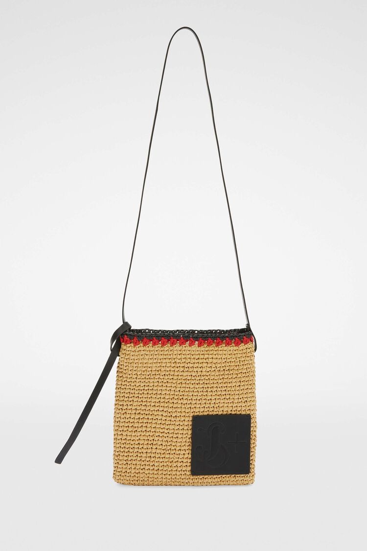 Raphia crochet crossbody bag with contrasting stripe and embossed Jil Sander+ monogram Details - adjustable leather strap - contrasting-colour stripe detail - blind embossed Jil Sander+ monogram on front leather patch - paper raphia - 100% raphia palm - made in Italy - StyleID: 8050393062071