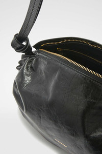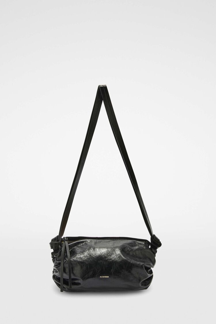 Small-sized leather crossbody bag with embossed Jil Sander logo Details - adjustable strap - zip closure - inner zipped pocket - drawstring detail on side - foil embossed Jil Sander logo - 100% calf leather - made in Italy - StyleID: 8059695912138