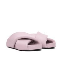 Nappa lambskin slip-on sandals in purple. · Open round toe · Padded criss-crossing straps at vamp · Molded leather footbed · Covered platform midsole · Rubber injection at leather outsole · Platform: H1 in · Heel: H1.5 in Supplier color: Pastel Upper: lambskin. Sole: leather. Made in Italy 231249F124005