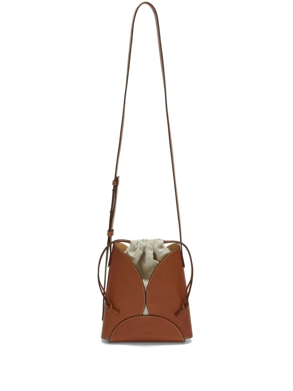 Curve leather crossbody bag Highlights - Camel brown - Calf leather - Adjustable shoulder strap - Drawstring fastening - Main compartment Made in Italy Composition Outer: Calf Leather 100%