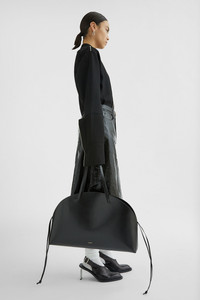 Large-sized leather shoulder bag with inner pouch and embossed Jil Sander logo Details - curved shape - two leather shoulder straps - detachable inner pouch with drawstring closure - nappa lining - embossed Jil Sander logo - 100% calf leather - made in Italy - StyleID: J07ZH0053P7100001