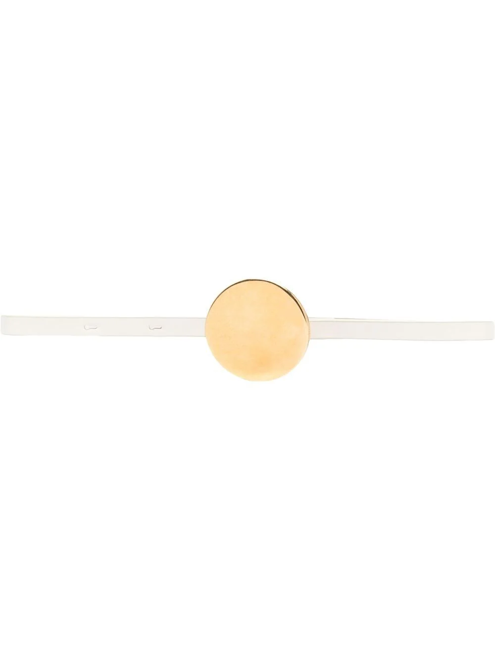 disc-detail leather belt off-white calf leather gold-tone hardware disc detailing punched holes adjustable fit Imported Composition Calf Leather 100% SIZE & FIT Measurement Maximum Length 37.4 in(95 cm) Minimum Length 25.59 in(65 cm) WIDTH 0.39 in(1 cm)