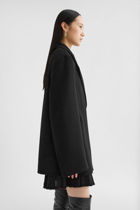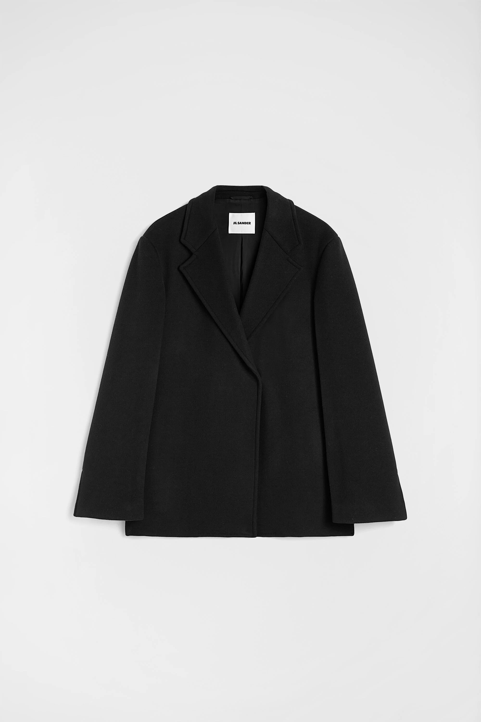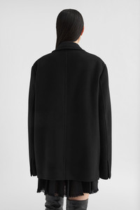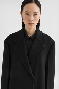 Short-length one-and-a-half-breasted double wool caban Details - oversized fit and boxy shape - dropped shoulders - flat collar and pointed rever - centre-front hidden hook closure - side pockets - viscose lining - compact double wool - 100% wool - made in Italy - StyleID: J02AA0193J40035001 Care - dry clean only - iron with care Fit - model is 177cm/5'9" and is wearing a size 36 DE - Please note that the physical label of the item will show the German size