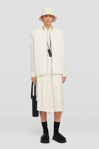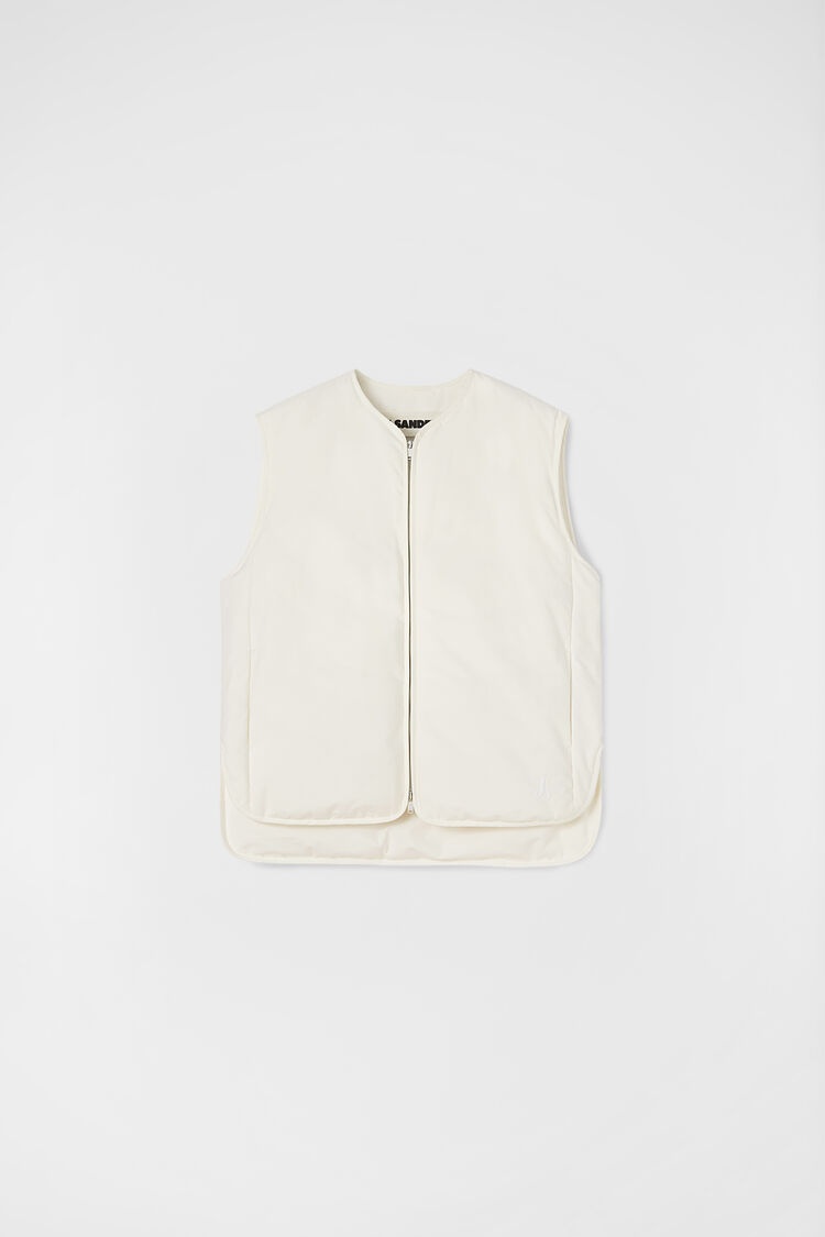 Water repellent organic cotton down vest with embroidered Jil Sander+ monogram Details - relaxed fit and boxy shape - front zip closure - hidden side pockets - embroidered Jil Sander+ monogram - packaway bag included - water repellent organic cotton - 100% cotton, padding 85% goose down 15% goose feather - made in Italy - StyleID: J40AF0147J45039106 Care - dry clean only Details - model is 177cm/5'9" and is wearing a size S - Please note that the physical label of the item will show the international size