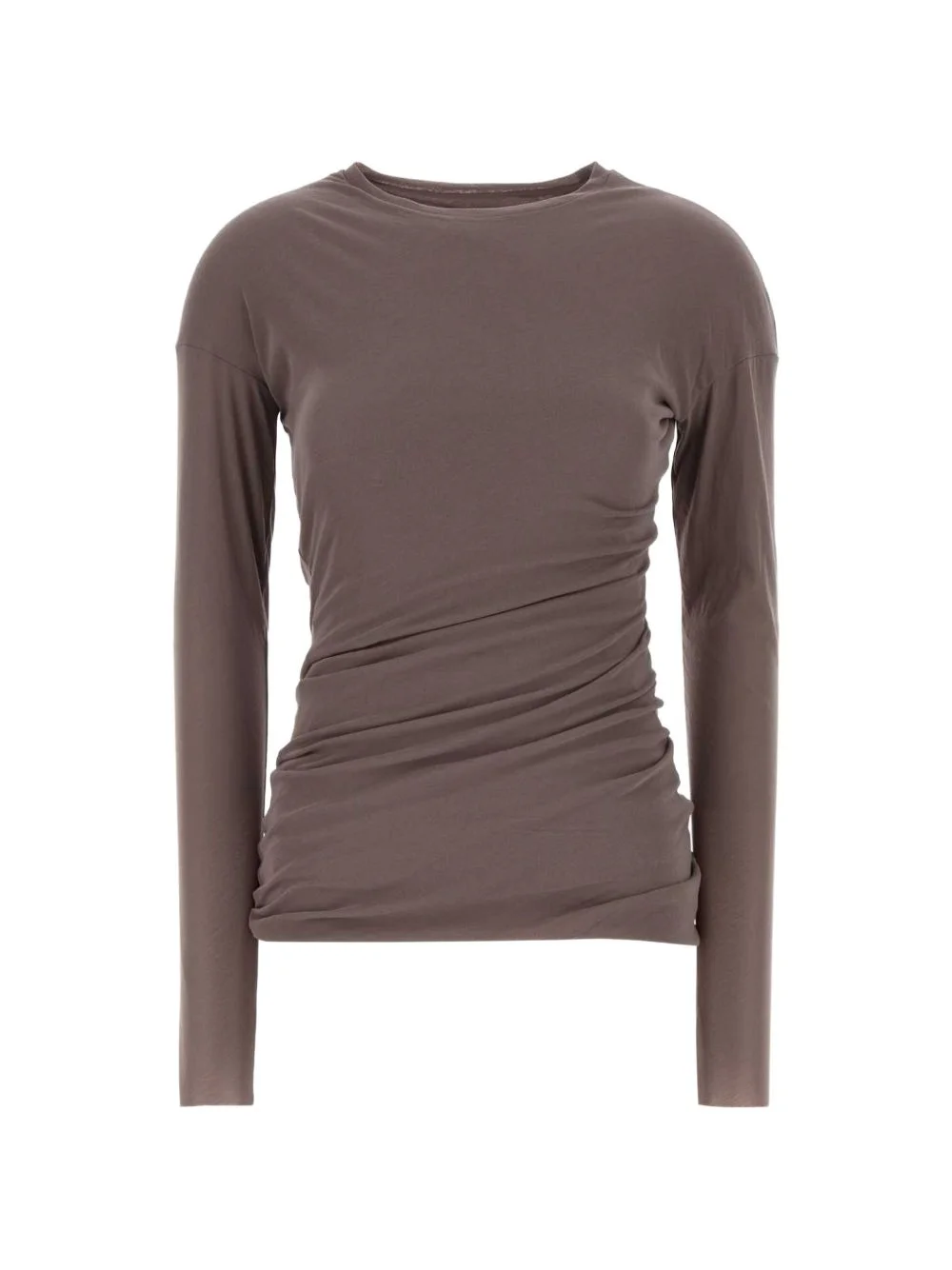 draped cotton top Highlights - Light purple - Cotton - Long sleeves - Draped detail Made in Italy Composition Cotton 100% Washing instructions Read Manufacturer Guidelines