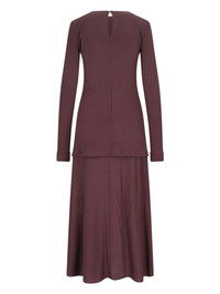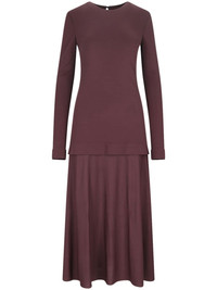 flared skirt dress Highlights - Bordeaux red - Crepe texture - Crew neck - Flared skirt - Long sleeves Imported Composition Viscose 82%, Polyamide 18% Washing instructions Read Manufacturer Guidelines