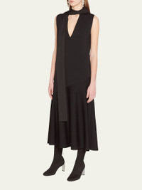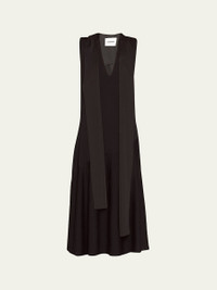 Jil Sander midi dress with a draped scarf detailing at the neck V-Neck Sleeveless Multi-style scarf Hem falls below the knee Sheath silhouette Wool/viscose Made in Italy Model is 5'10"/177cm. Online Inquiries: BGS21_B7RBD| Store Inquiries: #4408124