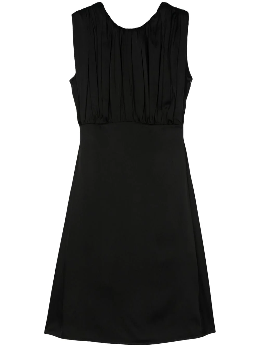 sleeveless midi dress Highlights - Black - Crepe de chine - Gathered detailing - Empire line - Round neck - Sleeveless - V-back - Mid-length - Unlined - Concealed side zip fastening Made In Italy Composition Lining: Viscose 100% Outer: Acetate 74%, Viscose 26% SIZE & FIT Measurement LENGTH 46.45 in(118 cm) WAIST 29.92 in(76 cm) HIPS 38.58 in(98 cm) FittingInformation Designed for a slim fit that sits just away from the body offering a close yet comfortable fit This piece fits true to size – take your usual size Washing instructions Dry Clean Only