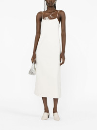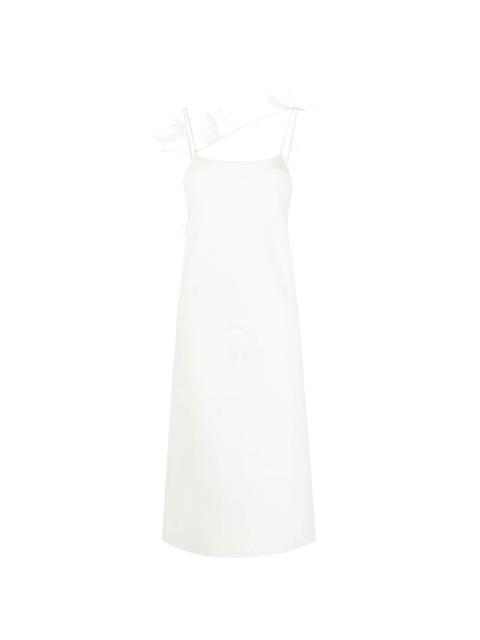 feather-trim slip dress Inspired by the nature of California, this Jil Sander dress is dotted with delicate, wispy feathers for signature handicraft detail. The plumes are strung along the delicate straps and down the back, adding a flutter of movement to the slip design. Highlights - Off-white - Ostrich feather - Feather-trim detailing - Square neck - Spaghetti straps - Calf-length - Slip silhouette Made in Italy Composition Ostrich Feather 100%, Viscose 94%, Polyester 6% SIZE & FIT Model measurements Height 5 ft 10 in(1.79 m) Bust/Chest 31.1 in(79 cm) Hips 35.03 in(89 cm) Waist 24.01 in(61 cm) FittingInformation Designed for a slim fit that sits just away from the body offering a close yet comfortable fit Made with a midweight knit, this piece offers some stretch This piece fits true to size – take your usual size