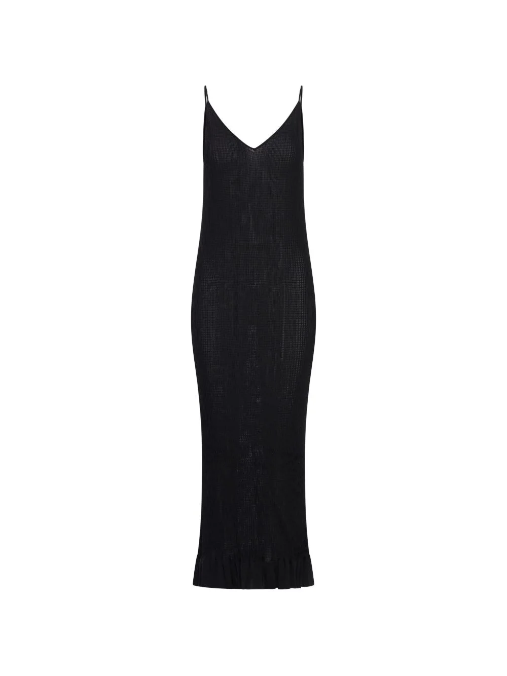 V-neck ruffled midi dress Highlights - Black - V-neck - Ruffled hem - Spaghetti straps Made in Italy Composition Viscose 100% Washing instructions Read Manufacturer Guidelines