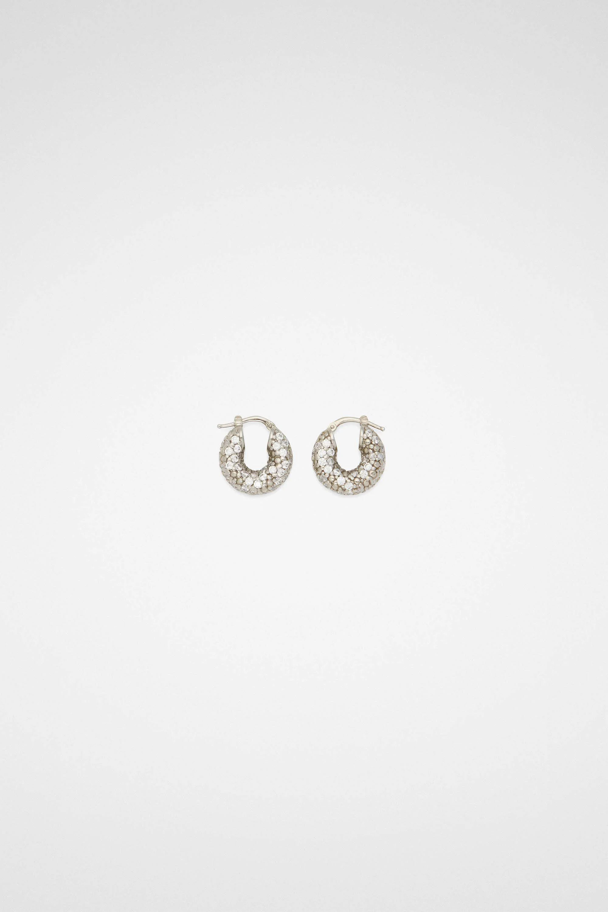Handcrafted brass hoop earrings with zircons Details - silver-toned - snap post closure - thickness 6 mm - engraved Jil Sander logo - nickel tested - antioxidant treatment - 100% brass, zircons - made in Italy - StyleID: J11VG0003P5092048