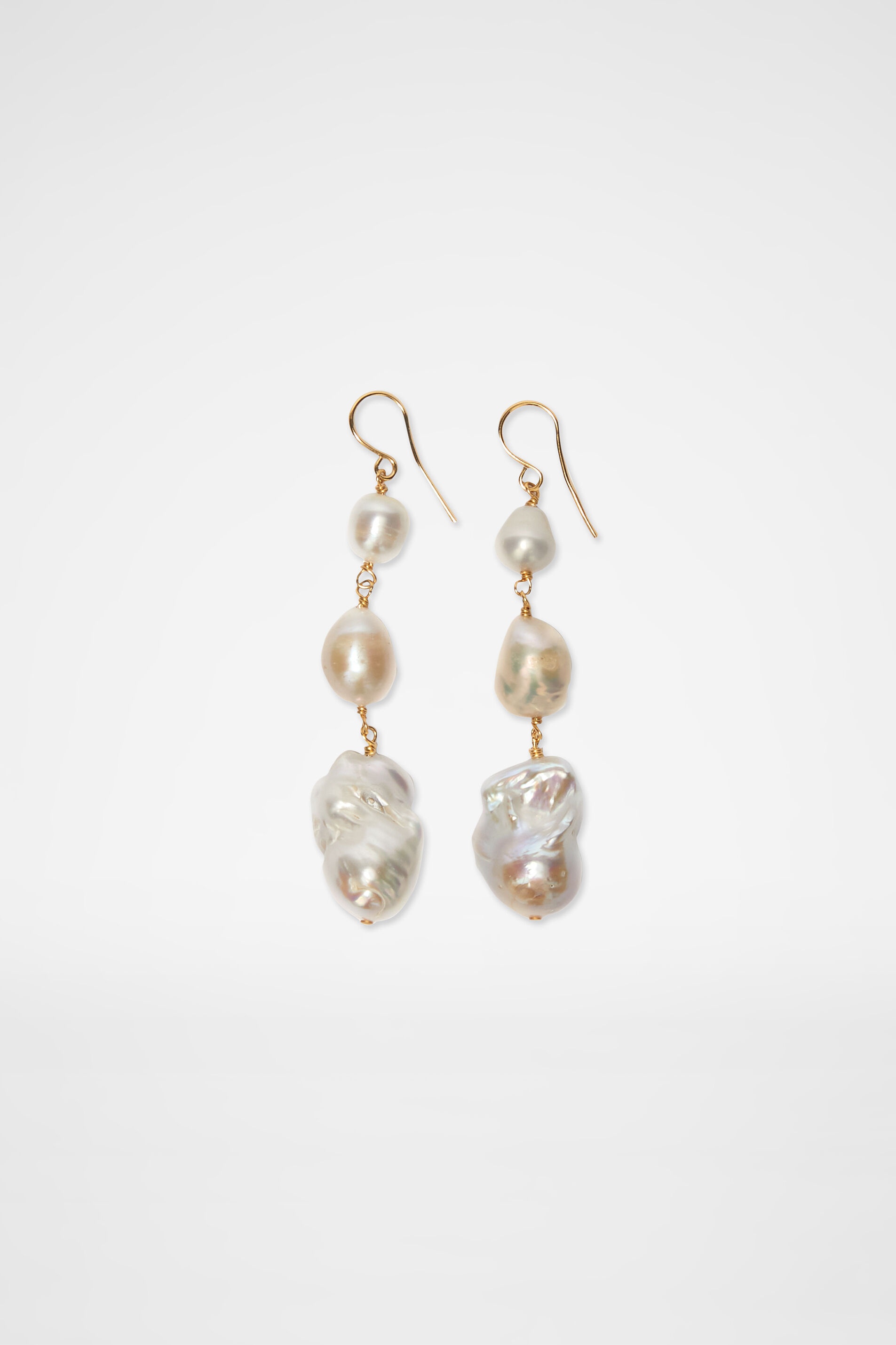 Handcrafted brass earrings with three-pearl pendants Details - irregular-shaped pearl pendant - wire hook - 0.5 micron eco brass - antioxidant treatment - nickel tested - 100% brass, freshwater pearls - made in Italy - style ID: JSPU837232-WUS80039 Size and measurements - total length 7,5 cm