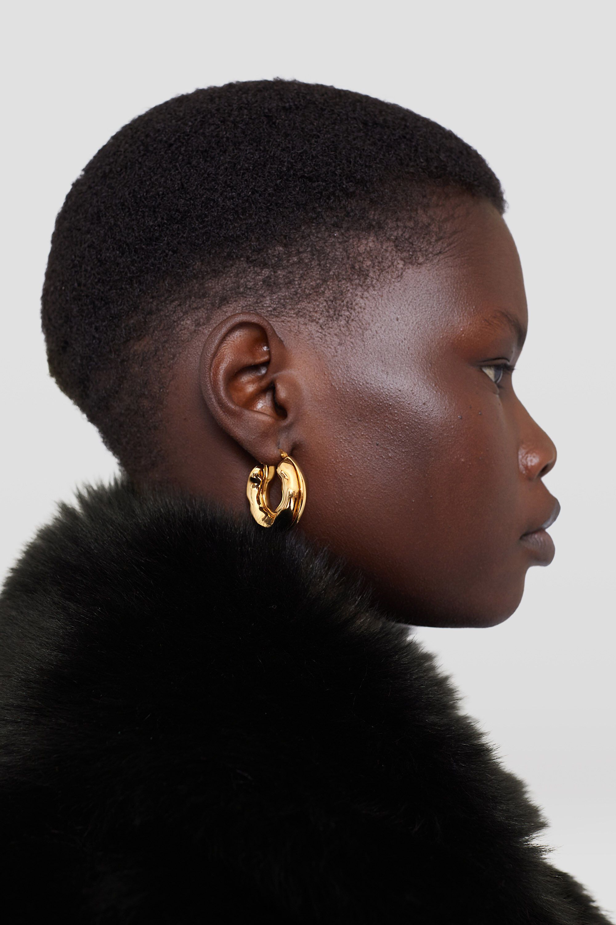 Handcrafted brass hoop earrings Details - undulating detail - hook closure - engraved Jil Sander logo - nickel tested - 100% brass - made in Italy - StyleID: 8055062831057