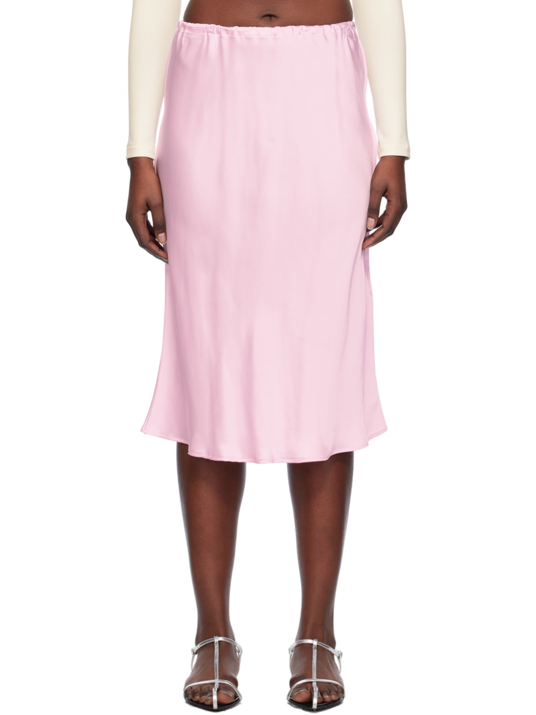 Pink Elasticized Midi Skirt