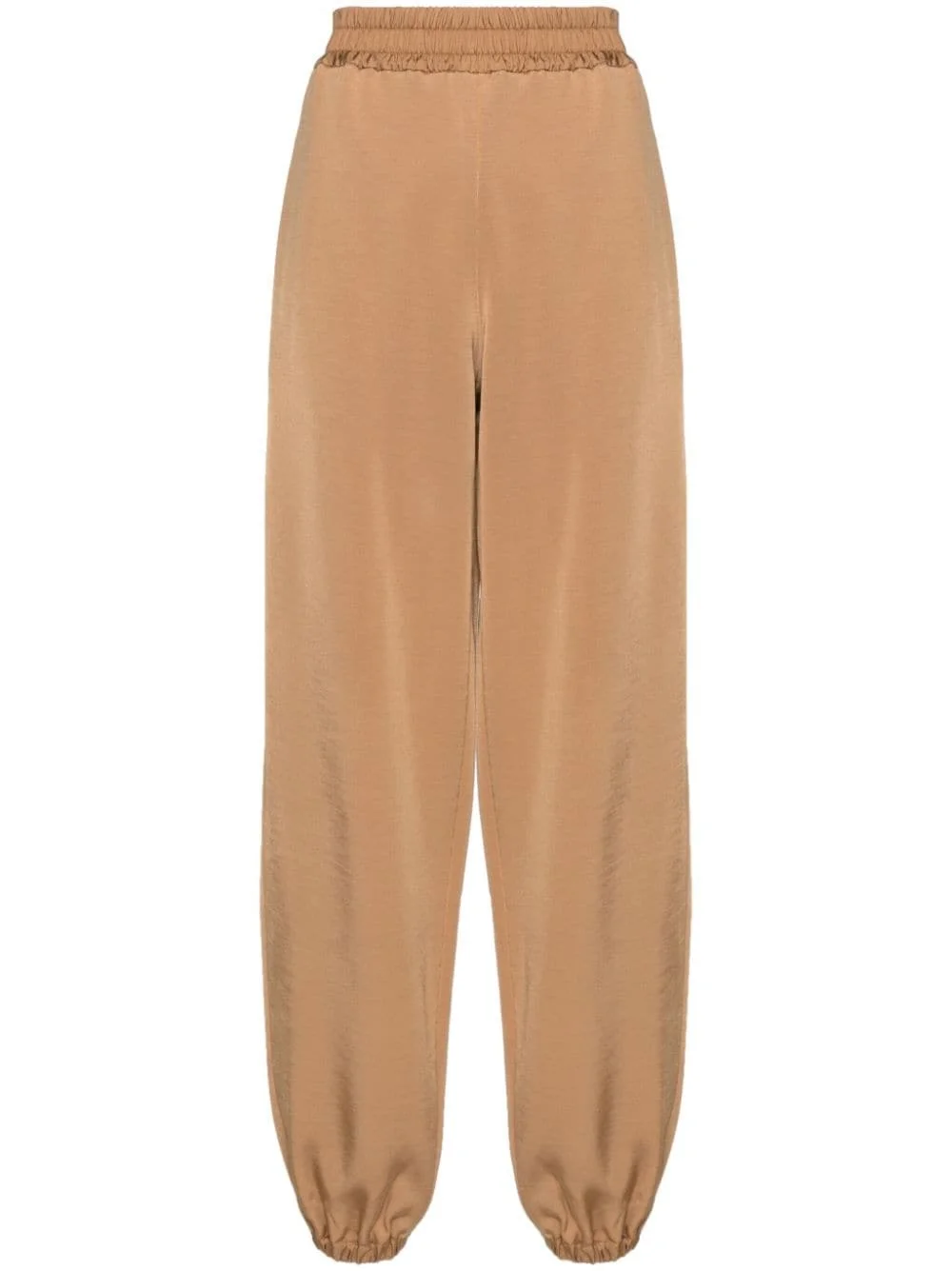 elasticated-waist straight-leg track pants Highlights - Light brown - Elasticated waistband - Elasticated ankles - Mid-rise - Straight leg - Two side inset pockets Made in Italy Composition Outer: Viscose 46%, Virgin Wool 40%, Polyamide 10%, Spandex/Elastane 4% Lining: Viscose 100% SIZE & FIT FittingInformation Designed for a relaxed tapered cut, these trousers allow for a close fit at the waist and offer a loose fit at the thighs, with a closer fit toward the ankles The elasticated waist allows for a comfortable fit Made from a midweight non-stretch fabric, this piece offers minimal elasticity when worn Measurement INSIDE LEG 29.92 in(76 cm) WAIST 27.55 in(70 cm) HIPS 40.15 in(102 cm) Washing instructions Dry Clean Only