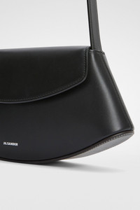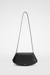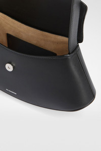 Small-sized leather crossbody bag with metal jewel buckle, curved base in contrasting leather and embossed Jil Sander logo Details - adjustable leather shoulder strap with metal jewel buckle - inner flat leather pocket with blind embossed Jil Sander logo - magnetic button closure flap - curved base in contrasting leather - suede lining - embossed Jil Sander logo - smoothed plain calf body - vegetable-tanned leather base - 100% calf leather - made in Italy - StyleID: J08WG0056P8354001