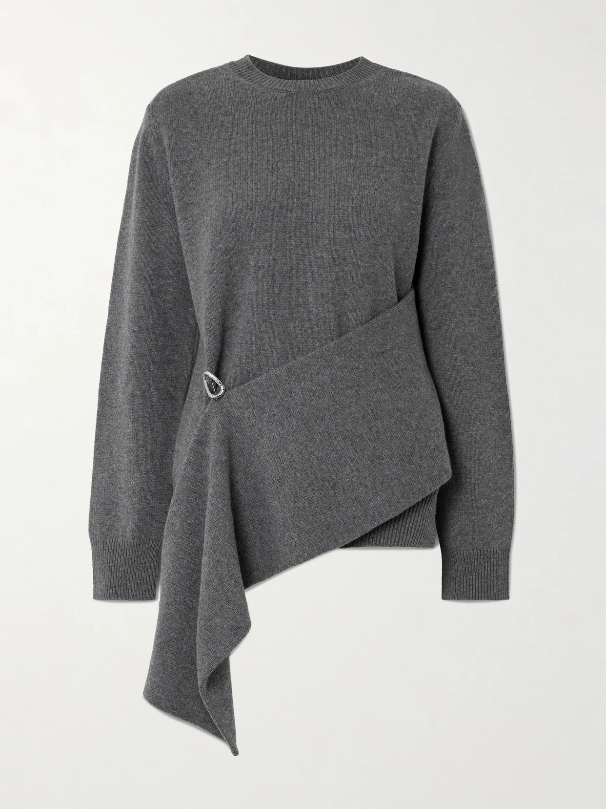 Jil Sander's sweater is designed with a hammered silver-tone brooch that's meant to secure the draped panel perfectly in place while adding polish. It's made from wool and cashmere-blend and defined by ribbed trims.