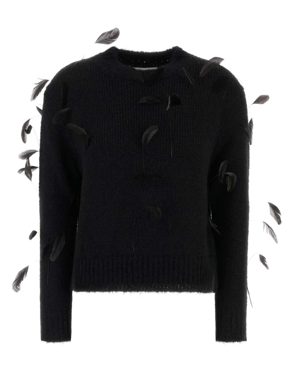 feather-detail sweater Highlights - Black - Feather embellishment - Round neck - Long sleeves Made in Italy Composition Alpaca 81%, Wool 16%, Polyester 3% Washing instructions Read Manufacturer Guidelines