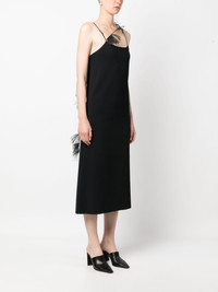 feather-trim slip dress Jil Sander’s minimalist aesthetic gets a subtly elegant update with this slip dress as the black slip design arrives with ostrich feather detailing throughout in a matching tone. Highlights - Black - Feather-trim detailing - Fine ribbed - Square neck - Crossover neck - Mid-calf length - Slip silhouette Made in Italy Composition Ostrich Feather 100%, Viscose 94%, Polyester 6% SIZE & FIT Model measurements Height 5 ft 11 in(1.8 m) Bust/Chest 31.49 in(80 cm) Hips 36.41 in(92.5 cm) Waist 25.59 in(65 cm) FittingInformation Designed for a slim fit that sits just away from the body offering a close yet comfortable fit Made from a midweight non-stretch fabric, this piece offers minimal elasticity when worn This piece fits true to size – take your usual size Washing instructions Dry Clean Only