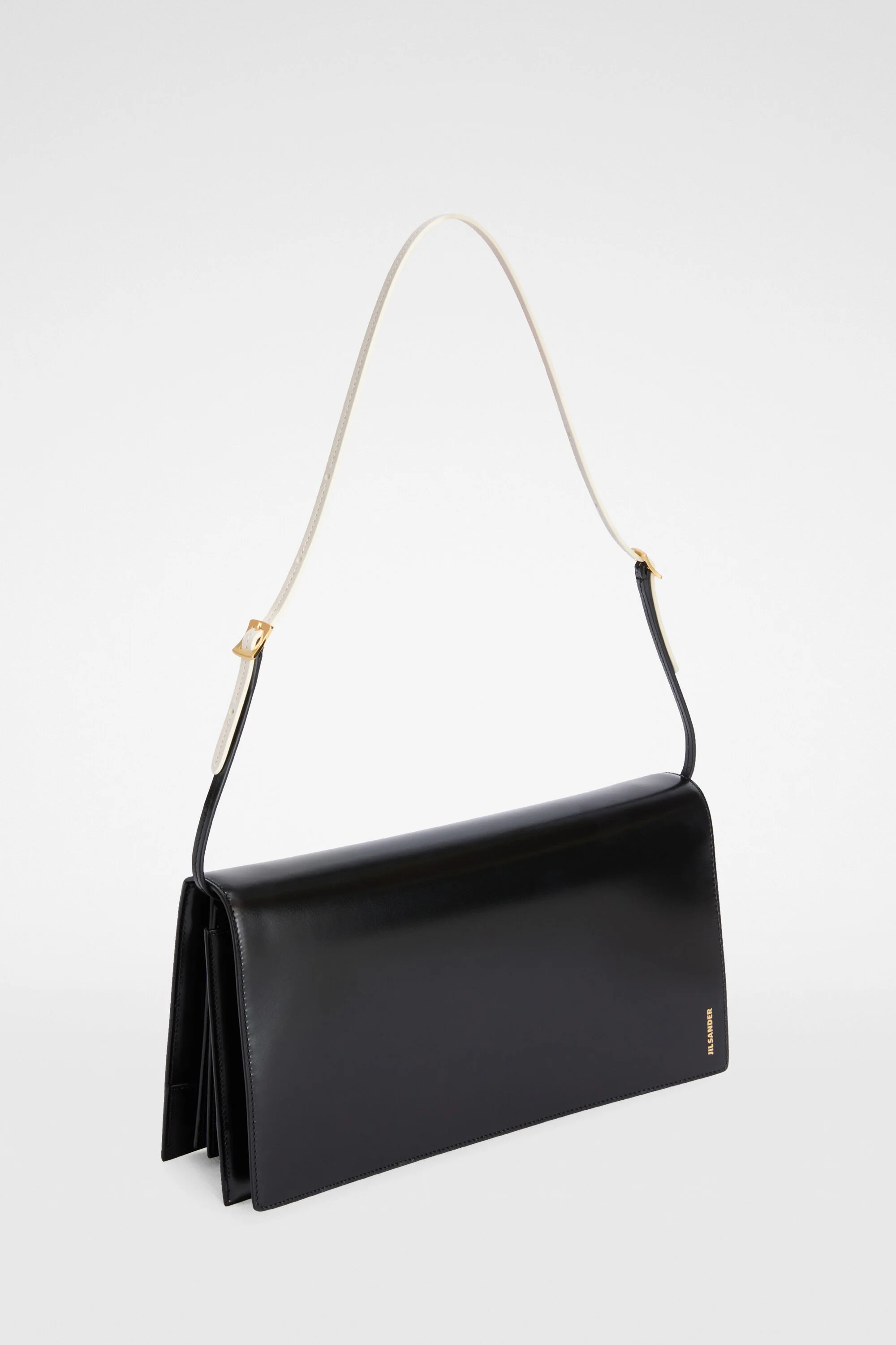 Medium-sized leather shoulder bag with small gussets and embossed Jil Sander logo Details - thin detachable two-tone shoulder strap - thin interchangeable monochromatic shoulder strap - gussets of different dimensions - magnetic button closure - nappa lining - embossed Jil Sander logo - 100% calf leather - made in Italy - StyleID: J08ZH0099P9054001