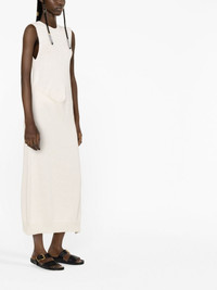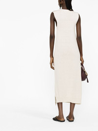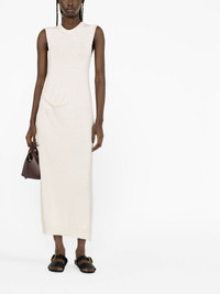 fine-knit maxi dress Jil Sander is well-known for its pared-back, minimalist style - and this knitted dress fully embodies that. Crafted from a fine knit in a soft hue, it boasts no adornments whatsoever. Its sleeveless, maxi design and lightweight feel make it a welcome addition to any summer wardrobe. Highlights - Cream white - Fine knit - Crew neck - Pull-on style - Sleeveless - Short side slits - Straight hem - Ankle-length Made in Italy Composition Cotton 48%, Ramie 28%, Cellulose 24% SIZE & FIT Model measurements Height 5 ft 10 in(1.79 m) Bust/Chest 31.1 in(79 cm) Hips 35.03 in(89 cm) Waist 24.01 in(61 cm) FittingInformation Designed for a slim fit that sits just away from the body offering a close yet comfortable fit Made with a midweight knit, this piece offers some stretch This piece fits true to size – take your usual size