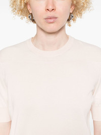 fine-knit T-shirt Highlights - Powder pink - Ribbed cuffs and hem - Crew neck - Short sleeves Made in Italy Composition Cotton 100% SIZE & FIT Model measurements Height 5 ft 9 in(1.75 m) Bust/Chest 34.64 in(88 cm) Hips 36.61 in(93 cm) Waist 26.37 in(67 cm) FittingInformation Designed for a relaxed fit, this piece allows for comfort and movement when worn Made with a lightweight knit, this piece offers some stretch