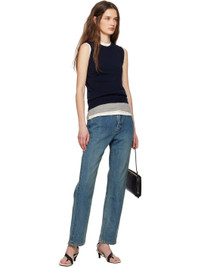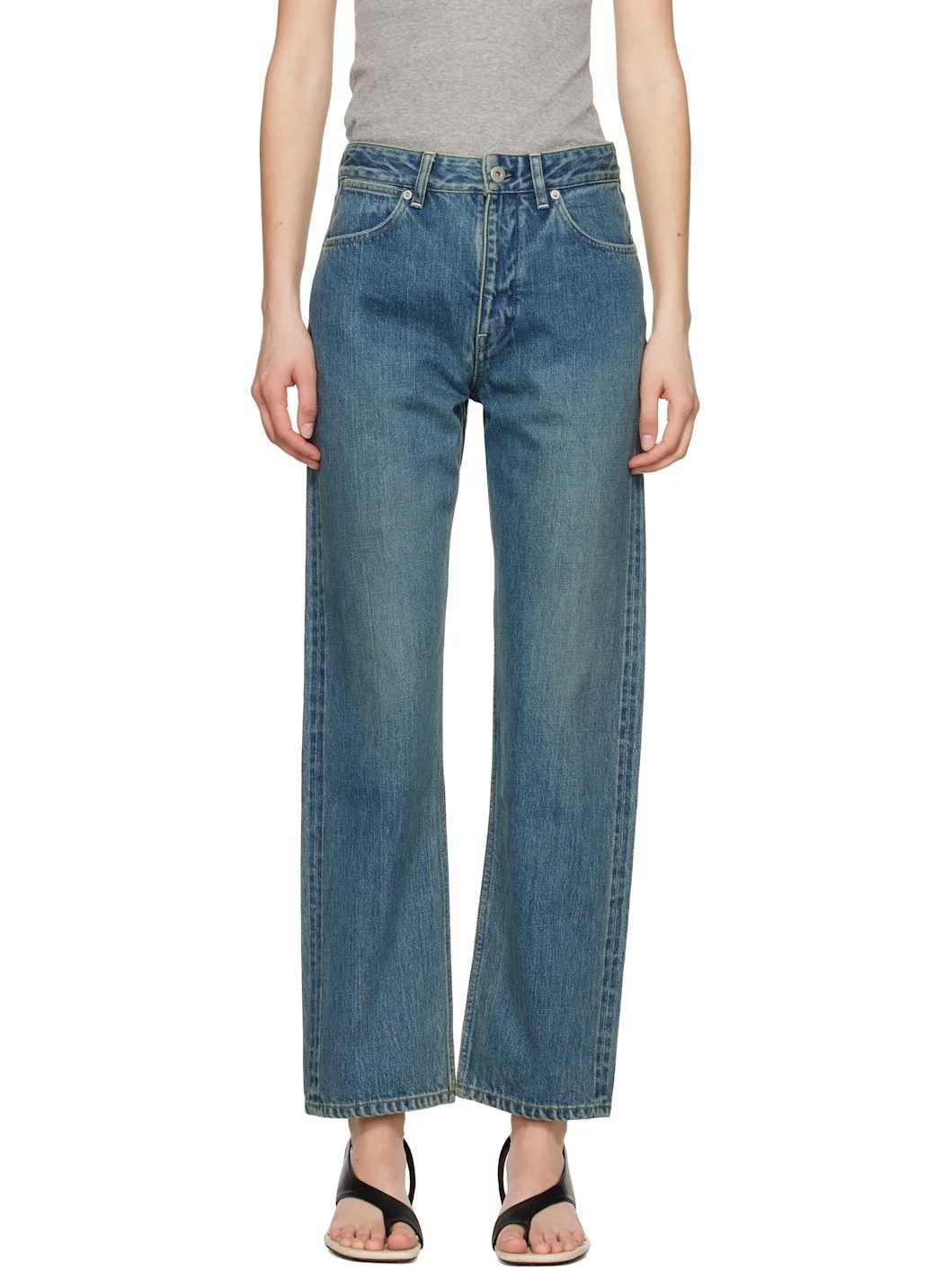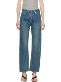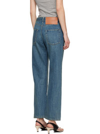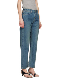 Non-stretch denim jeans. Subtle fading throughout. · Belt loops · Five-pocket styling · Zip fly · Leather logo patch at back waistband · Silver-tone hardware · Contrast stitching in off-white Supplier color: Blue Body: 100% cotton. Lining: 100% cotton. Made in Japan 251249F069003
