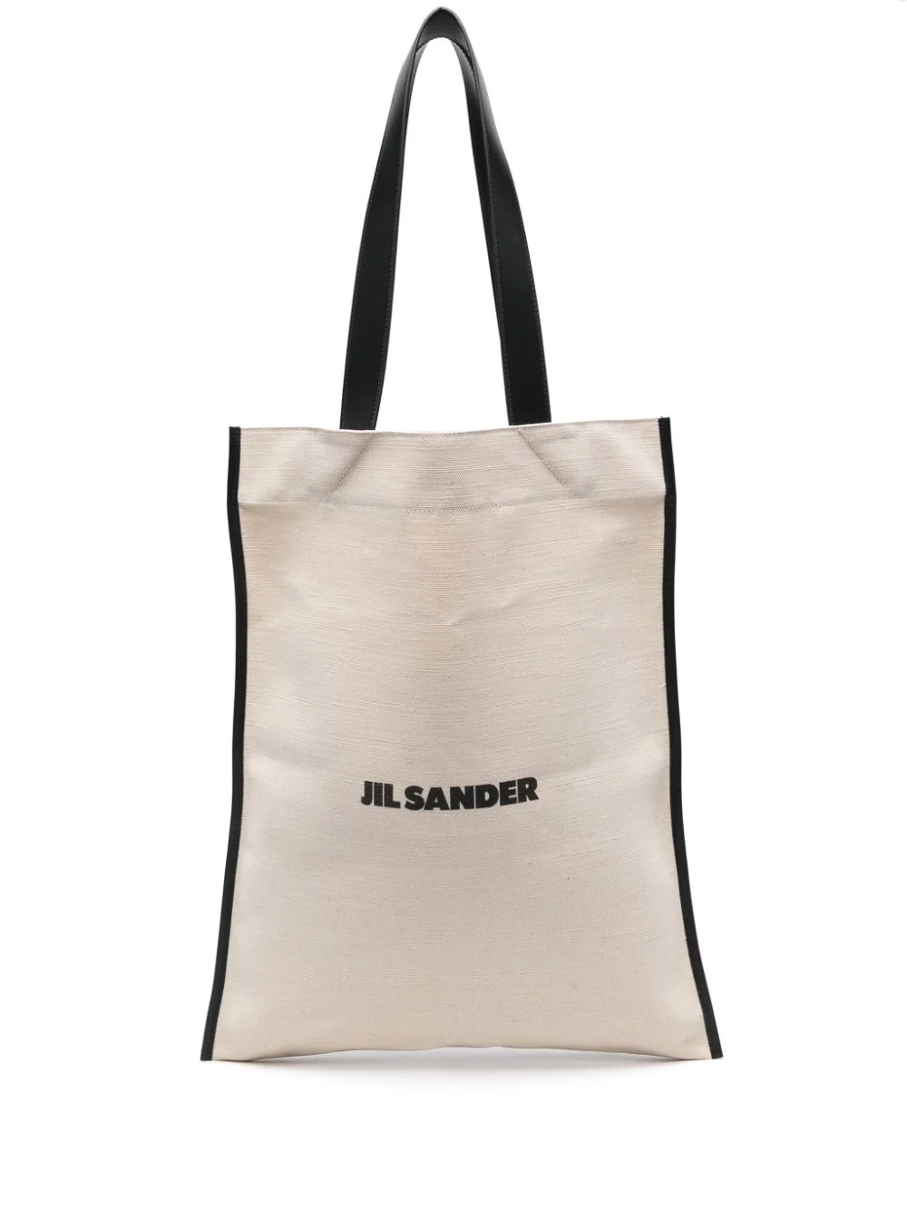 Flat embroidered-logo tote bag Highlights - Ivory white/black - Canvas - Leather trim - Two flat top handles - Embroidered logo to the front - Main compartment - Internal slip pocket - Debossed internal logo - No fastening Made in Italy Composition Outer: Calf Leather 100%, Polyurethane 100%, Jute 61%, Cotton 39% SIZE & FIT Model measurements Height 5 ft 11 in(1.8 m) Bust/Chest 31.49 in(80 cm) Hips 35.82 in(91 cm) Waist 24.8 in(63 cm) Measurement HANDLE 11.02 in(28 cm) HEIGHT 18.89 in(48 cm) WIDTH 15.35 in(39 cm)