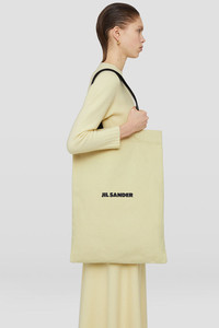 Large-sized canvas shopper bag with leather handles and printed Jil Sander logo Details - rectangular shape - two leather handles and top - leather inner pocket with two compartments - cotton linen canvas - printed Jil Sander logo on front - 70% cotton, 30% linen - made in Italy - StyleID: 8059695493972