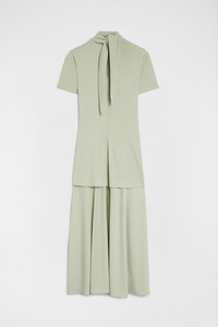 Short-sleeved viscose crepe dress with foulard collar to tie at the back Details - relaxed fit and calf-length - single button closure at back of neck - double-layer effect - foulard collar with back tie - fluid viscose crepe - 82% viscose-rayon 18% polyamide-nylon - made in Italy - StyleID: J04CT0111J65016110 Care - dry clean only - iron with care Fit - model is 177cm/5'9" and is wearing a size 34 DE - Please note that the physical label of the item will show the German size
