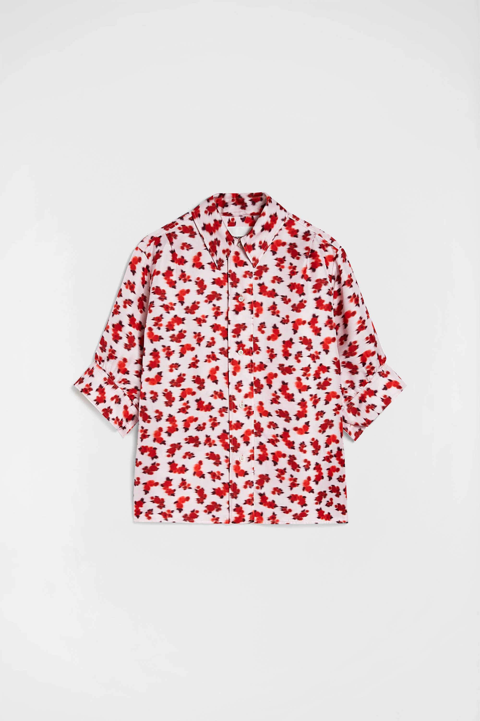 Heavy fluid viscose saglia shirt with rounded and gathered short sleeves Details - oversized fit and boxy shape - dropped shoulders - classic collar - centre-front button closure - rounded and voluminous short sleeves with gatherings - inner button closure at cuffs - watercolour mini flower on heavy fluid viscose saglia - 100% viscose-rayon - made in Italy - StyleID: J02DL0241J65333690 Care - dry clean only - iron with care Fit - model is 177cm/5'9" and is wearing a size 34 DE - Please note that the physical label of the item will show the German size