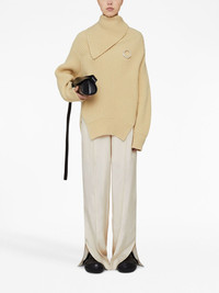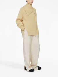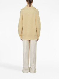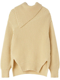 foldover neck ribbed jumper Reflecting Jil Sander's understated yet contemporary take on knitwear, this cream-hued jumper is woven in Italy from delicate wool and cut to a relaxed asymmetric silhouette. Its ribbed design and cowl neck add texture and dimension. Highlights - Vanilla white - Wool - Cowl neck - Chunky ribbed knit - Long sleeves - Front slit - Asymmetric design Made in Italy Composition Wool 100% SIZE & FIT FittingInformation Designed to be unstructured, offering a loose fit throughout Made with a midweight knit, this piece offers some stretch Measurement SLEEVE LENGTH 20.07 in(51 cm) LENGTH 28.34 in(72 cm) WAIST 43.3 in(110 cm) BUST 43.3 in(110 cm)