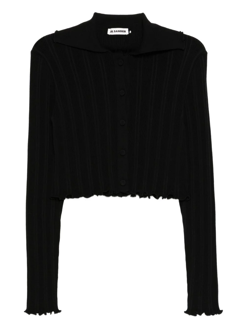 frilled cardigan Highlights - Black - Front button fastening - Crew neck - Lettuce hem Made in Italy Composition Cotton 100% SIZE & FIT Model measurements Height 5 ft 10 in(1.77 m) Bust/Chest 29.33 in(74.5 cm) Hips 32.28 in(82 cm) Waist 24.01 in(61 cm) FittingInformation Designed for a slim fit that sits just away from the body offering a close yet comfortable fit Constructed with additional length on the sleeve Made with a midweight knit, this piece offers some stretch Washing instructions Dry Clean Only