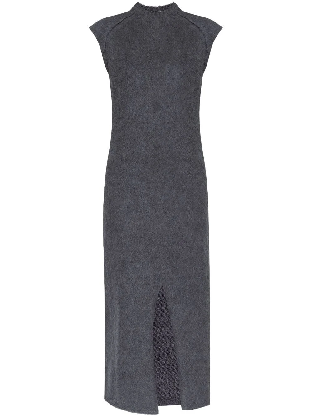 front-slit knitted maxi dress Highlights - Grey - Wool-silk blend - Knitted construction - Crew neck - Sleeveless - Fitted waistline - Front slit - Maxi skirt Made in Italy Composition Wool 60%, Mohair 25%, Silk 15% SIZE & FIT FittingInformation Designed for a slim fit that sits just away from the body offering a close yet comfortable fit Made with a midweight knit, this piece offers some stretch This piece fits true to size – take your usual size