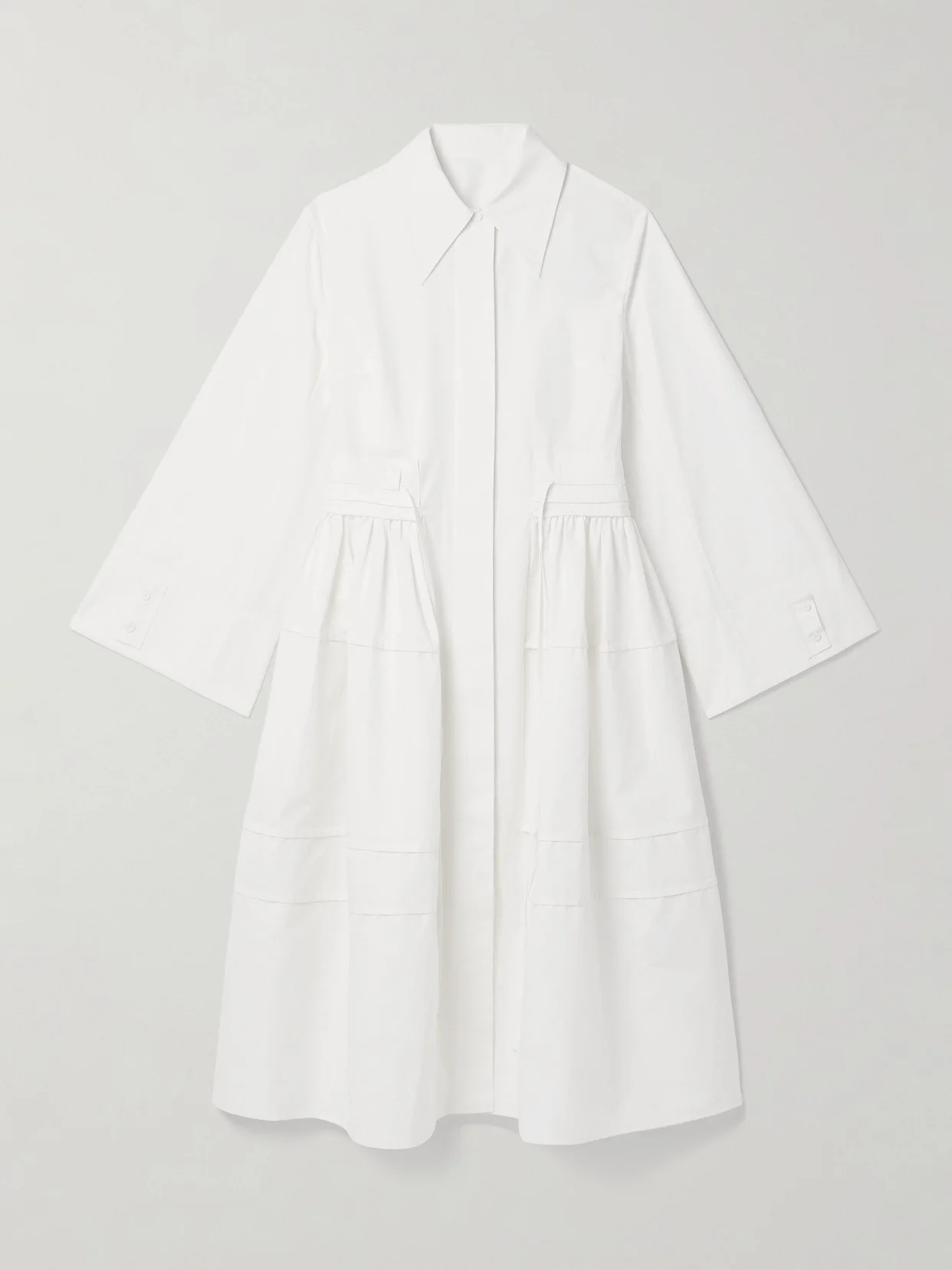 Jil Sander's dress is made from cotton-poplin that gathers at your waist and falls to a midi hem. It has wide bell sleeves and a covered placket for a streamlined finish.