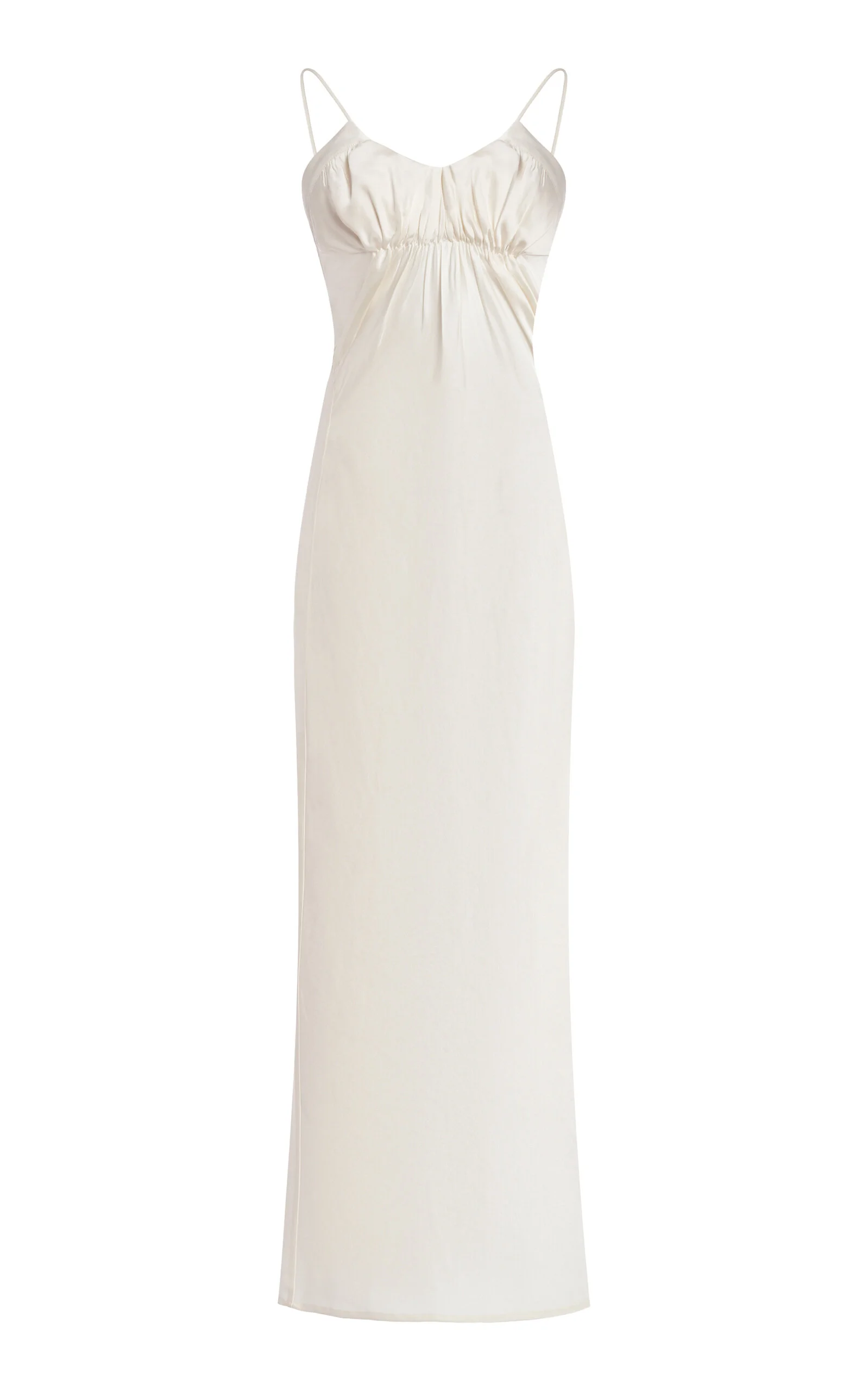 Each season, husband-and-wife duo Luke and Lucie Meier exercise exacting restraint on an effortless blend of the elevated, clean and sensual. The latest blend of sumptuous materials delivers the ease we’re all craving, in a covetable, impeccably tailored wardrobe you’ll rely on for life. Crafted from a crisp poplin, this midi dress gathered at the bust and extends into a sleek, A-line skirt. Style yours with strappy sandals and a woven tote for a chic day look. PRODUCT DETAILS - Pre-Fall '24 - Zip fastening - Composition: 56% Cupro, 44% Viscose-Rayon, Lining: 100% Cotton - Designer color: Latte - Dry clean - Imported SIZE & FIT - Our model is wearing a size EU 32 - Our model is 5'11" with a 32" bust, 24" waist, and 35" hip - Designed for a slim fit