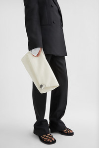 Nappa leather clutch bag with jewel zip puller and embossed Jil Sander logo Details - soft rectangular shape - zip closure with jewel zip puller - aged-finish jewel with engraved Jil Sander logo - nappa lining - embossed Jil Sander logo - 100% ovine leather - made in Italy - StyleID: 8058191330736