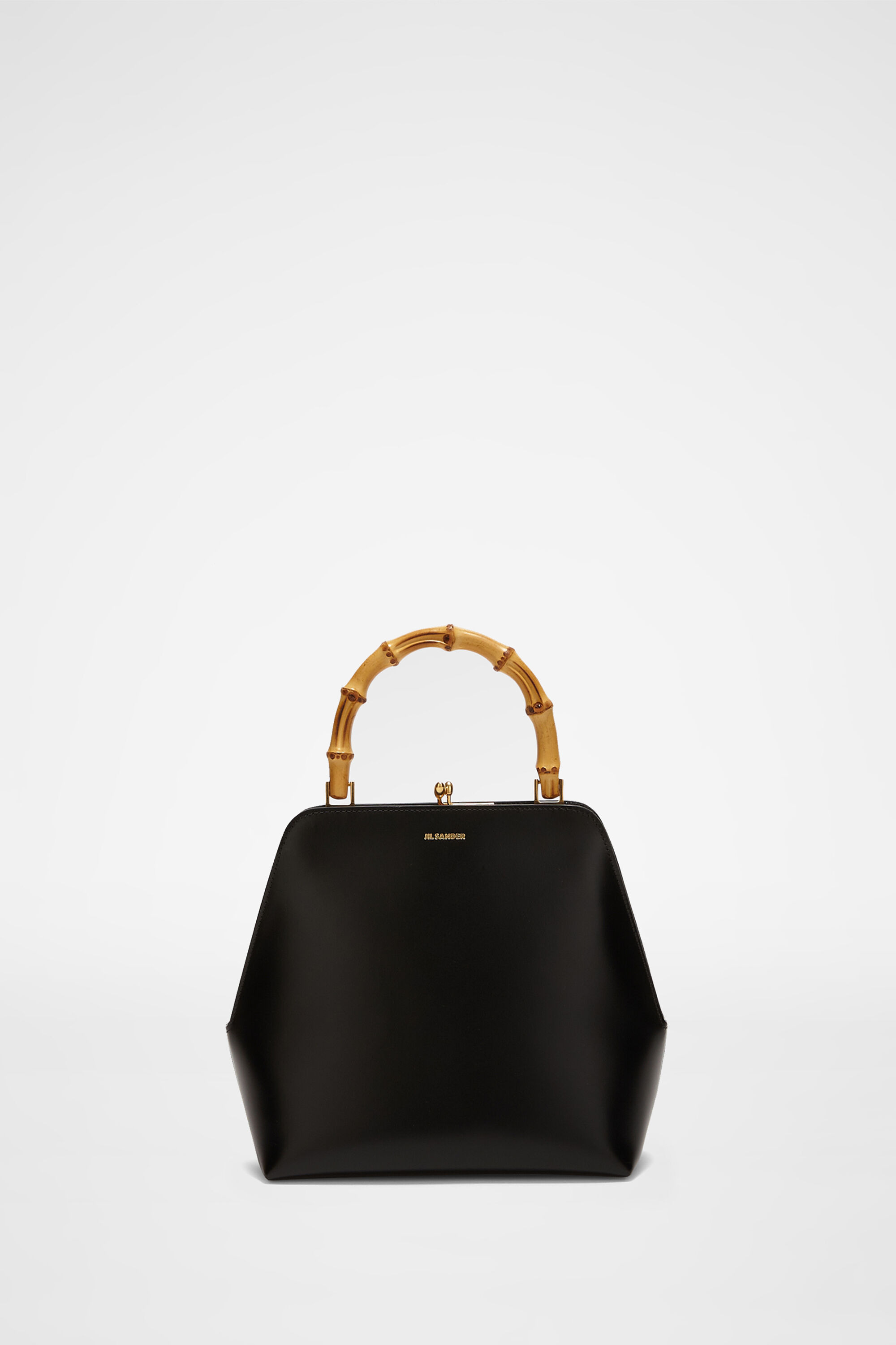 Small-sized leather handbag with metal frame detail and embossed Jil Sander logo Details - bamboo top handle - square shape - clutch closure - inner zipped pocket - sleek metal frame detail - nappa lining - foil embossed Jil Sander logo - 100% calf leather - w 18 cm x h 20 cm x d 9 cm - made in Italy - StyleID: J07WD0021P4866001